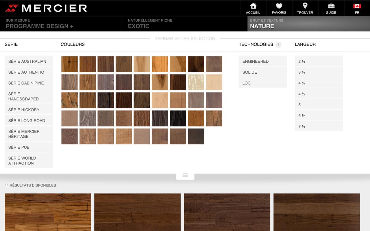 The Mercier Brand. With 12 wood species, 37 rich colors, and beautiful eco-friendly finishes, Mercier wood floors offer thousands of possibilities, limited only by your imagination. For a natural, rustic, or more modern look, Mercier offers a vast selection of wood floors in a variety ... View Video